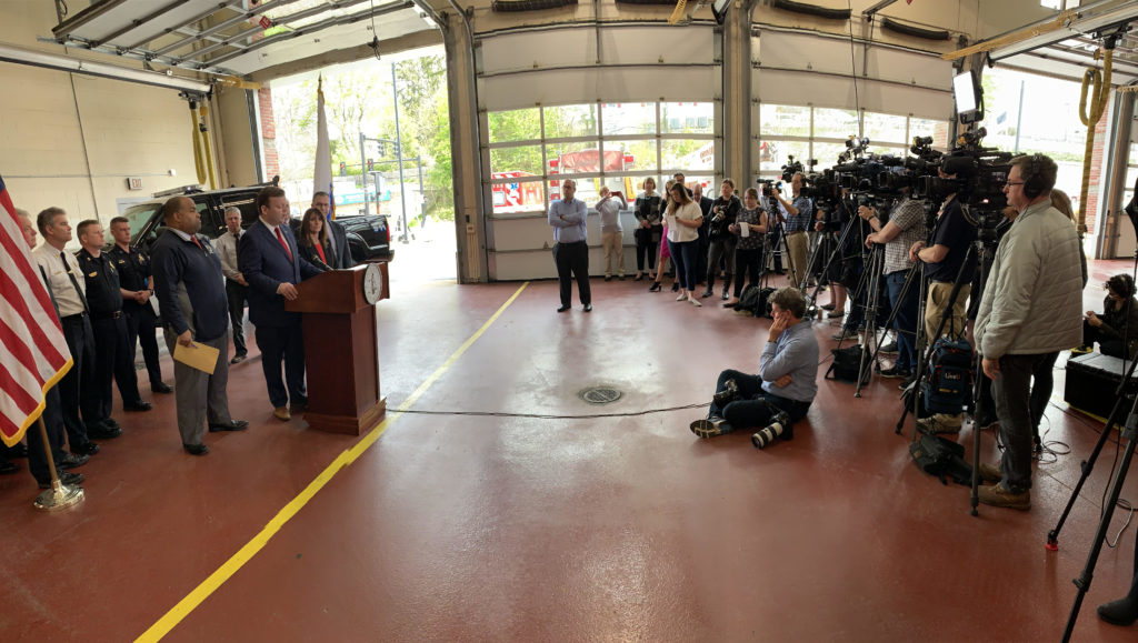 One of several press conferences held in the wake of the Andover gas explosion crisis.