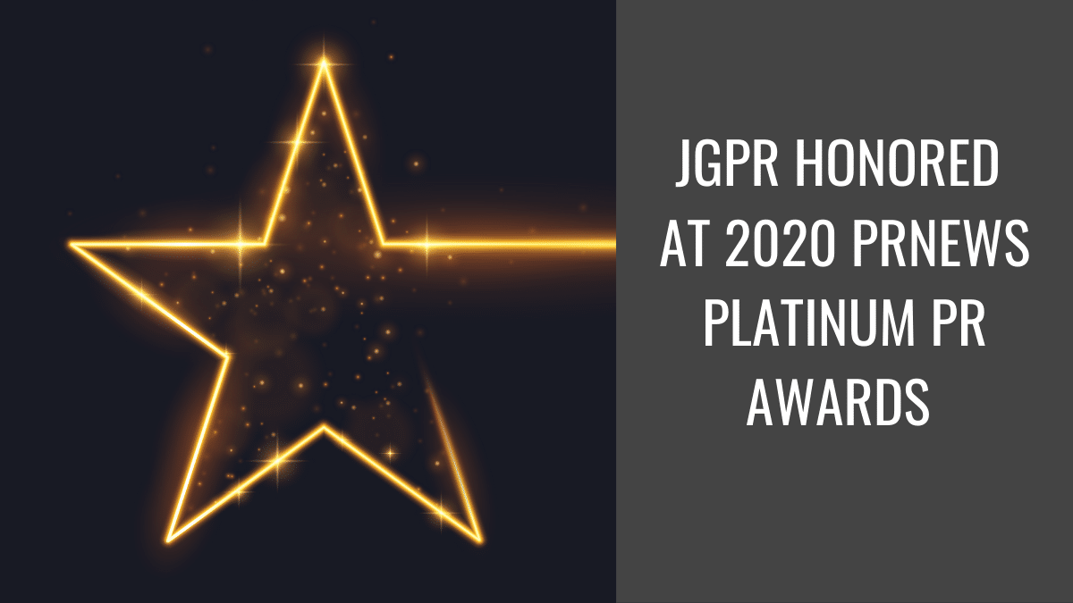 The annual PRNEWS Platinum PR Awards recognize the most imaginative messaging campaigns, exceptional communicators and top-notch teams in the public relations space across the globe. Hosted virtually on October 27 amid the COVID-19 pandemic, the PRNEWS Platinum Awards drew from hundreds of entries in more than 55 categories, from global PR campaigns to CEO of the Year. JGPR was one of five finalists in the PR Team of the Year category.