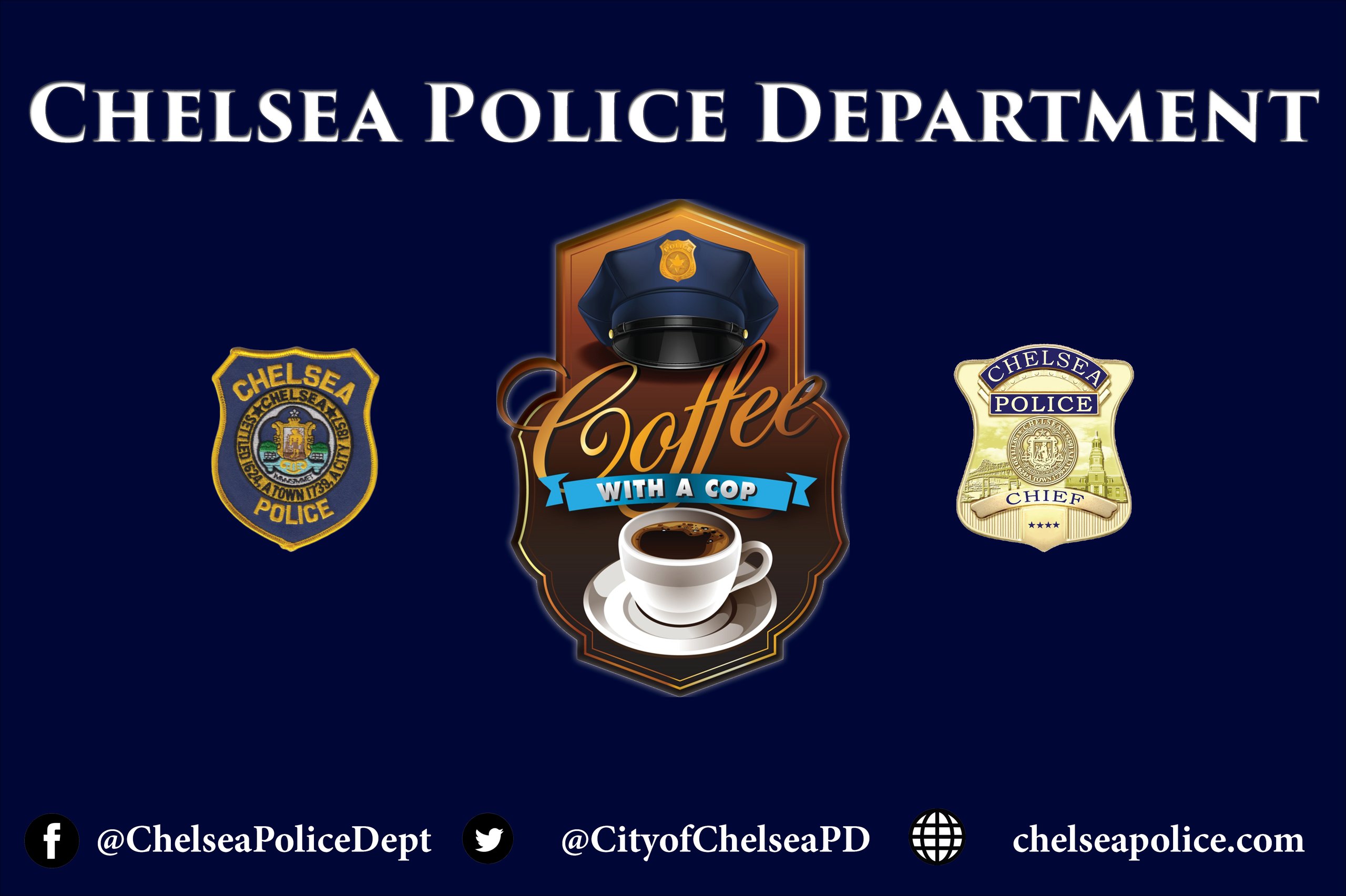 A reusable, outdoor vinyl banner with hanging gromets comes with your badge/patch/seal flanking the Coffee with a Cop logo and your agency socials and website address below. A simple design that saves your department money versus custom work. Price includes shipping anywhere in the U.S.